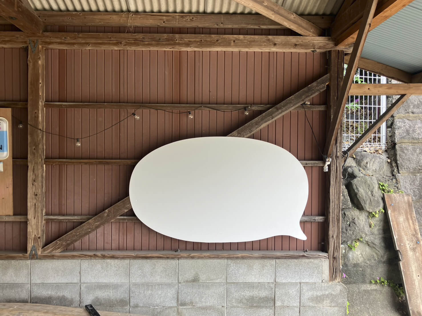 こども食堂の雰囲気にあわせた「ふきだし」型の、スチール複合板の掲示板です。