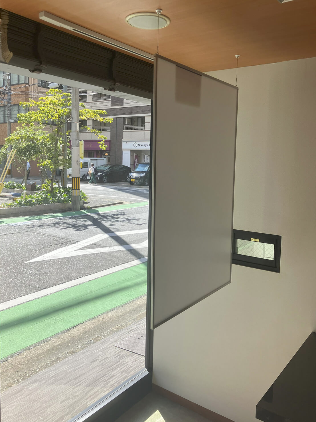 また、窓際には吊り下げポスターパネルを新規設置しました。